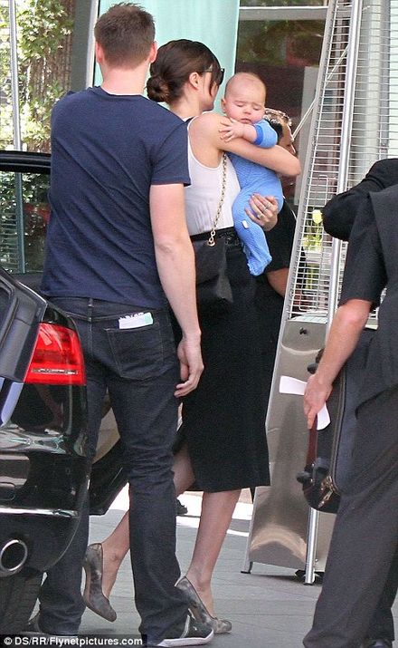 Repeatedly flattered for her magnificent after-birth figure, Miranda Kerr at last was noticed carrying her little gem, baby son Flynn on Tuesday May 10, meanwhile beauty was scouting shops in West Hollywood. Star parents’ baby boy seemed to look serene and calm, having an afternoon nap in the careful arms of his famous mother, and worn in blue striped wrapper, clinging to her shoulders. He looks like a really fast growing little one, still nurtured by suckling, counting only five months.
