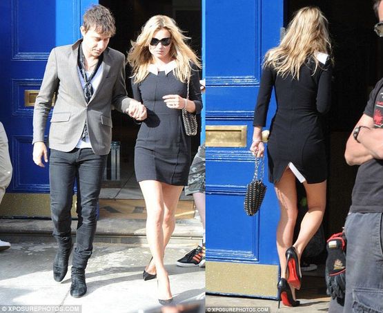 Instead of Kate’s usual look in a blazer and skinny jeans, the beauty preferred to go for lunch in a tiny black daytime dress which has a short hemline at the back. But it seems that she forgot to have a quick rear check in the mirror, before leaving her home. As she made her way inside the restaurant, the short hemline was picked up by the breeze, giving bystanders a cheeky glimpse of her behind. Fortunately, she wore black Christian Louboutin heels whose gaudy red sole distract a wee bit from the misfortune.