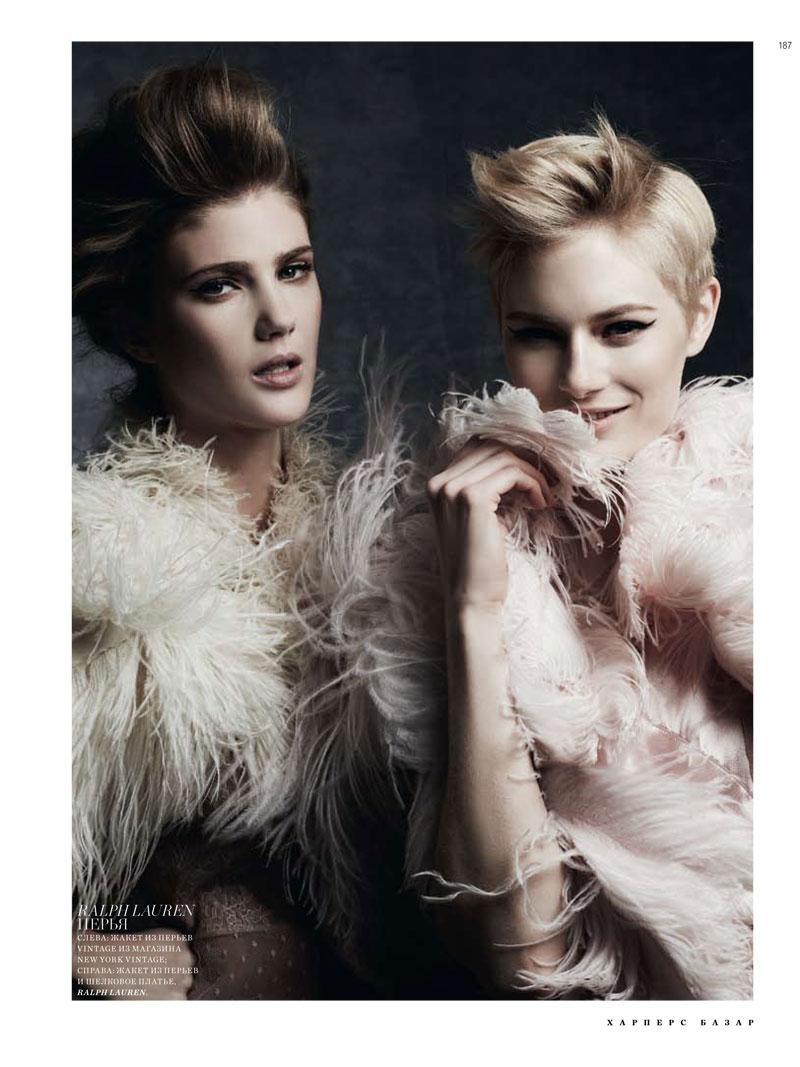 The American model Lindsay Lullman joined the British Louise Donegan for a fashion editorial featured in Harper’s Bazaar Russia February issue. Fashion director Natalia Alarvedian styled and photographed the two models wore for the shooting.