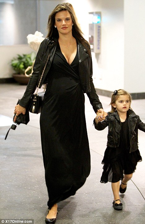 Taking her daughter Anja to the LA premiere of Mirror Mirror last weekend, Alessandra Ambrosio made another beautiful appearence. Seve months pregnant and glowing, the model kept her usual effortless elegance. Mother and daughter looke adorable in matching total black outfits: dress, leather jacket and ballet flats.