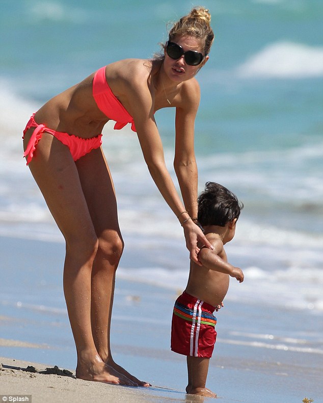 27 and fabulous, Doutzen took the day to relax and have family fun by the side. Patiently, the model got her little boy to enjoy the marvels of the sea, teaching him the splashy waves are supposed to be fun and not feared. Dutch DJ Sunnery James, Doutzen’s husband since November 2010 and Phyllon’s father, completed the loving family portrait. The threesome shared a bunch of happy moments!