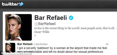 Bar Refaeli expresses her discomfort after dubious airport patdown.