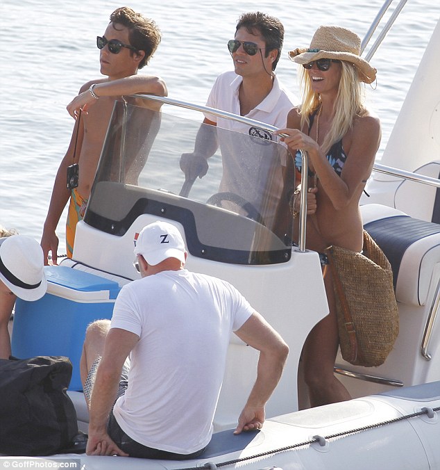 The model is taking a well-deserved break from filming the new series, “Britain’s Next Top Model,” and she seemed to be having a whale of a time whizzing by on the back of a motorcycle or walking hand-in-hand on the beach in Ibiza with one or the other of her sons. And “the body” was always on display and no, there was no need for cover-ups here, not yet anyway.