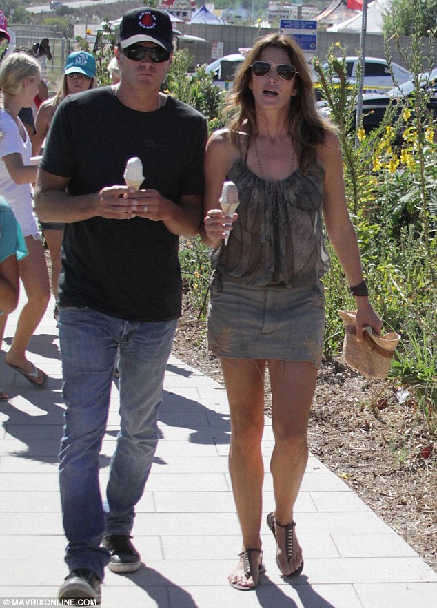 Mother-of-two, Cindy, looked supermodel fit in a short skirt, a camisole top and showed off her fabulous legs in a pair of summer sandals as she walked beside husband of 14 years Rande as they enjoyed the festivities and the summer sunshine.