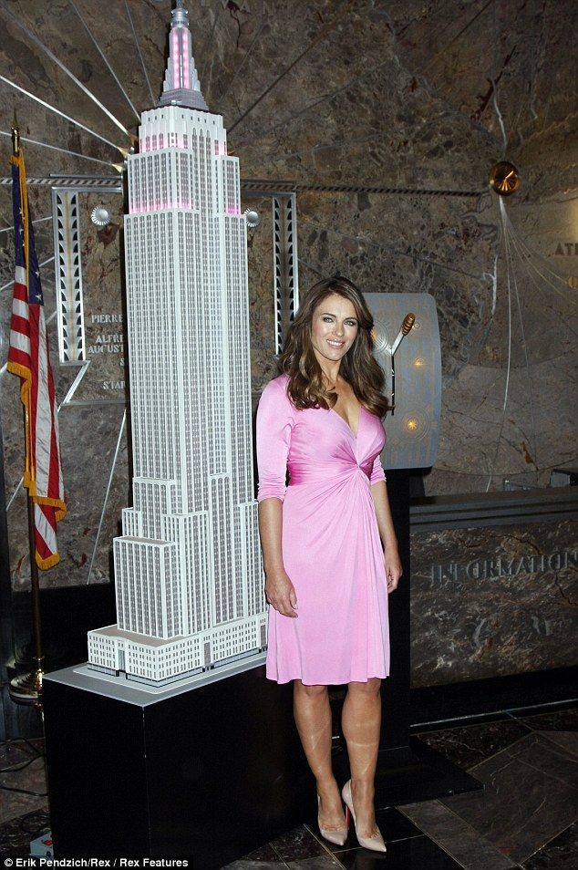 It was pink all the way for the Breast Cancer Awareness campaign. Elizabeth Hurley, one of the most avid supporters of the campaign decided to do the same by donning a pretty pink dress that hugged her curves in all the right places to turn on the lights of the iconic Empire State Building pink to celebrate the 20th anniversary of Estee Lauder’s Breast Cancer Awareness campaign. Elizabeth was in New York to give her full support. She was seen posing with a big poster with the words, “Courage. Believe in a world without breast cancer. Know we’re here until it’s true.”