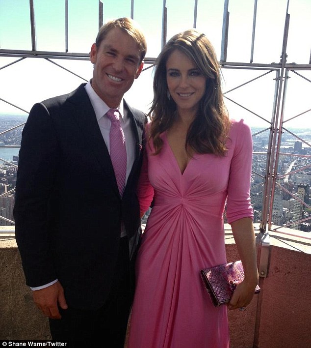 Boyfriend Shane Warne was on hand to lend full support wearing a dark suit and a pink tie and flashing his “toothpaste ad” white smile. He later tweeted: “On the 80th floor with @Elizabeth Hurley of the Empire State Building…Xxx.” Can we feel the pride in those words? Yes, we can and rightfully so.