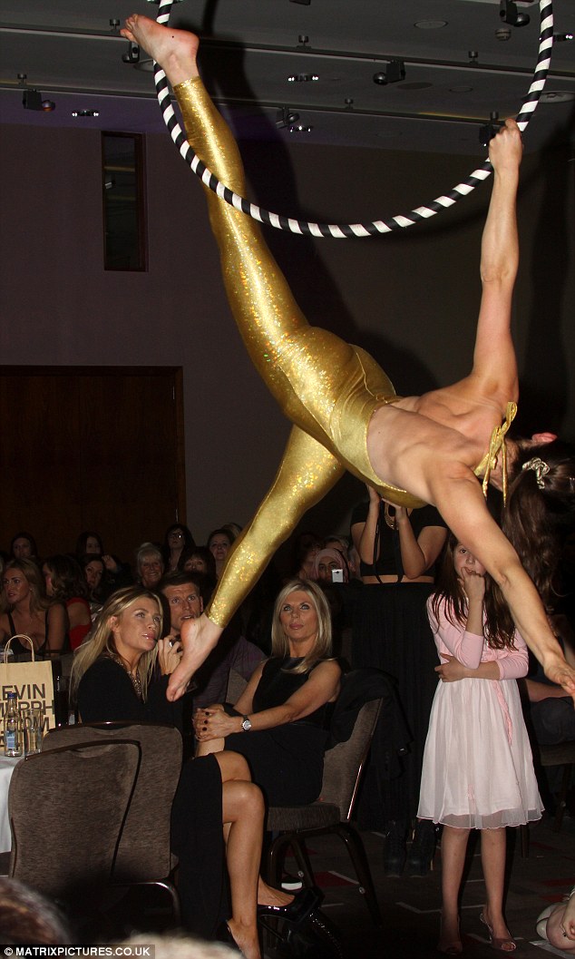 Abbey chose a glamorous long black gown with a plunging neckline for the event and added a sparkly choker-style necklace to bring attention to her cleavage. She sipped on a coke as she watched her sister take the catwalk and there was no mistaking the look of pride in her eyes as she watched Elle walk the walk. Her cousin Chloe Cummings also took part in the fashion show and in-between the show Abbey watched acrobats perform some back-bending stunts and kept her entertained.