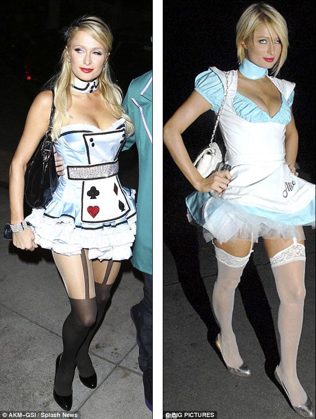 It’s Halloween time in Beverly Hills and it’s time to step out in your most scariest outfit ever and to show some creativity but hotel heiress decided to put a new twist on an old look. Paris Hilton dressed up as Alice in Wonderland and hoped that people would forget that she donned the similar look in 2007 albeit with a little difference. Back then, she wore a white frock with white stockings and garters, this time around it was black and white stockings with garters but the sexed-up Alice look remained. The plunging neckline was there complete with the “I am Alice, watch me roar” look in her eyes.