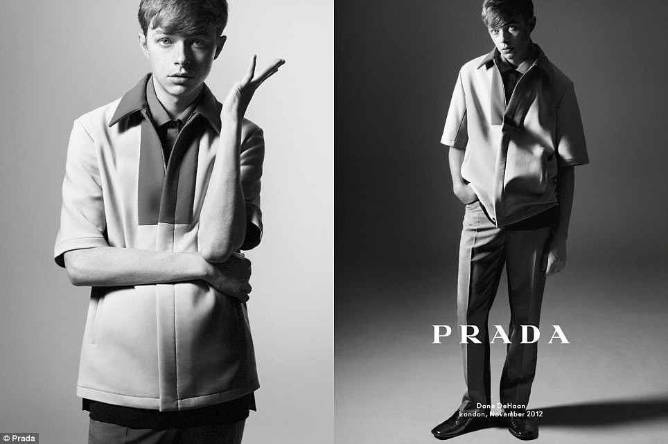 The four male actors showcase the luxury brands lightweight coats, shirts, pants and sweaters and the shots were taken in black and white by photographer David Sims. According to Prada, the menswear collection is supposed to evoke “simplicity, detail and the emergence of a new elegance.”