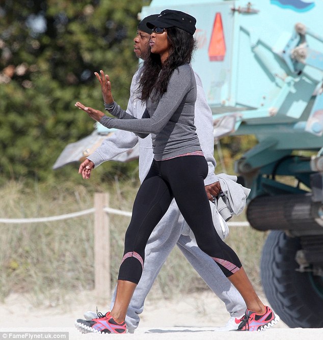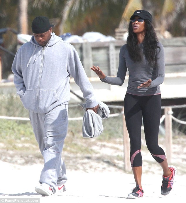 Supermodel Naomi Campbell was seen having a lively conversation with a male friend on a beach in Miami on Wednesday. It seemed to be more than a conversation as the model known for her temper tantrums gesticulated animatedly with her hands and seemed intent on getting a point across.