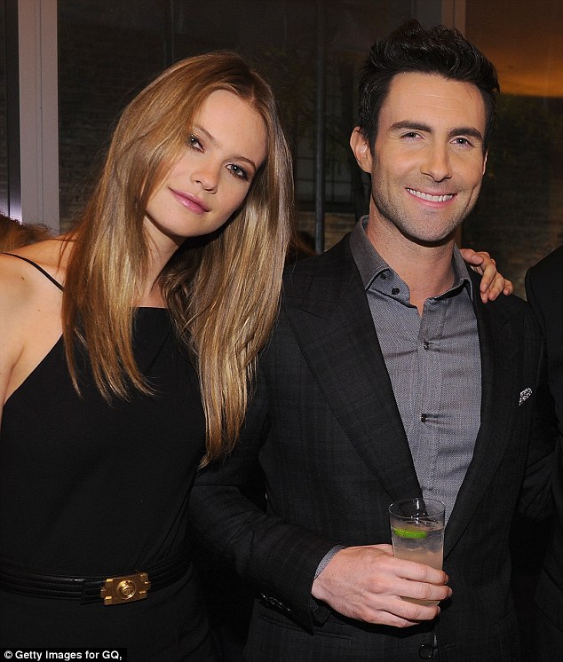 Adam Levine keeps a tight hold on fiancee Behati Prinsloo as they jet off together