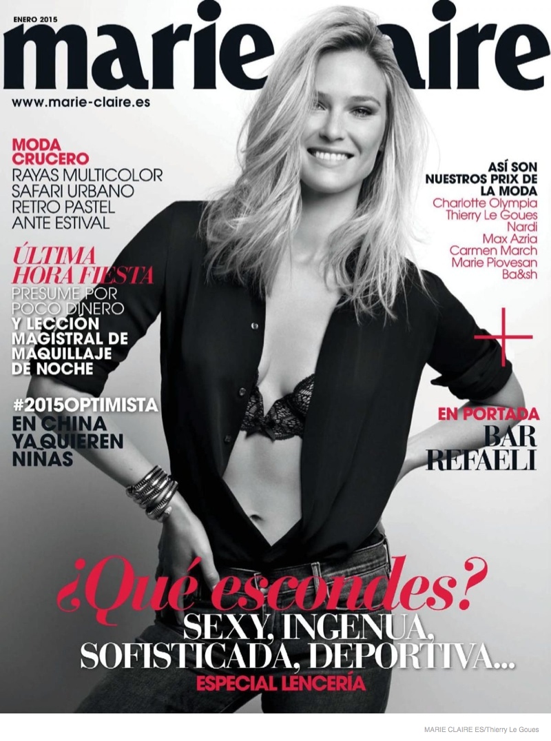 Israeli Supermodel Bar Refaeli is the cover girl for the January 2015 issue of Marie Claire Spain. After receiving the “Fashion Icon” award from the magazine its no surprise that the 29 year old gets to open the new year for the publication too.