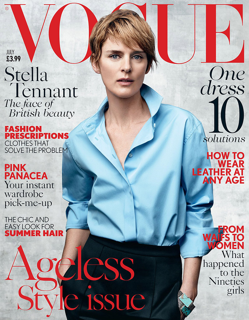 Fashion’s love affair with Stella Tennant still continues. The Legendary model is the cover star of the July 2015 issue of Vogue UK, its “Ageless Style” edition which it brings out every year.