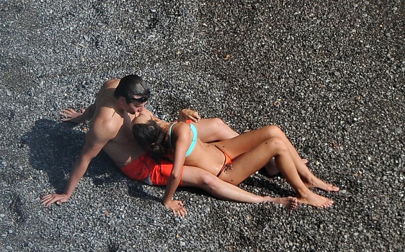 The 29-year-old Russian supermodel and the 40-year-old “American Sniper” star clearly appear to be in their honeymoon phase as they spent their vacation chilling on lounge chairs, frolicking, sunbathing, swimming, straddling and kissing.