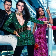 Photographed by Mario Sorrenti, the same photographer behind Balmain’s family-focused fall 2015 campaign, the three beauties pose super-sexy wears of studded tuxedo jackets, a structured brocade dress and trim menswear-inspired separates. they ride on a subway train alongside male models Hao Yun Xiang and Dudley O’Shaughnessy.