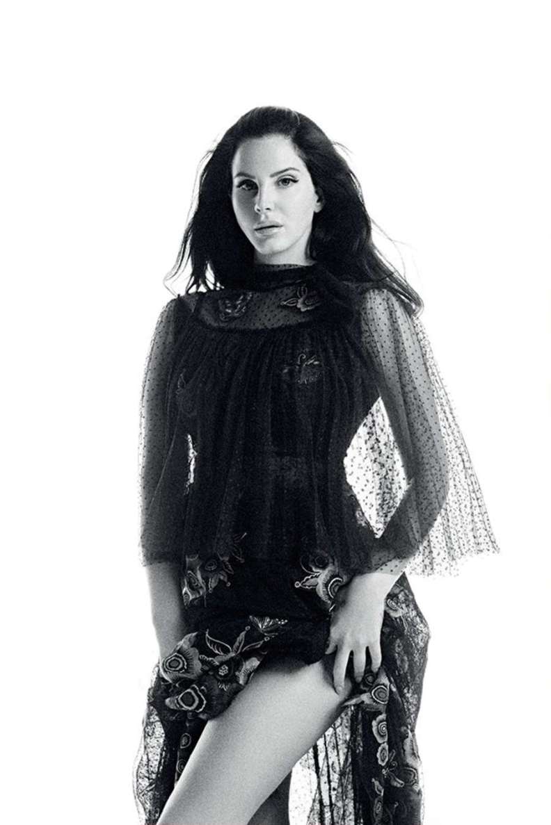 Captured by fashion photographer Liz Collins, the ‘High by the Beach’ singer looks elegant on the cover as she sports an Alexander McQueen dress with ruffles while straddling a chair. For the rest of the editorial, Lana models a series of ensembles from a pale pink Chanel suit with heather gray trim to a black lace Valentino dress.