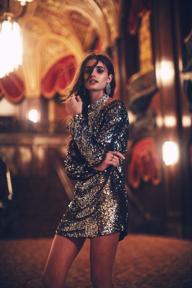 Free People’s latest offering includes long chiffon skirts, cold-shoulder turtlenecks and dramatic gowns. Check out Taylor as she shows off her dreamy side in more photos from the shoot below.