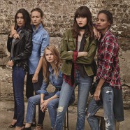 The girls pose in front of rustic-urban brick backdrop in jeans of every kind – striped, distressed, high-waisted, faded, and ankle-cuffed. ‘For the Spring / Summer 2016 denim campaign we are once again inspired by this group of cool girls who perfectly show how to wear a pair of jeans,’ said Topshop creative director Kate Phelan.
