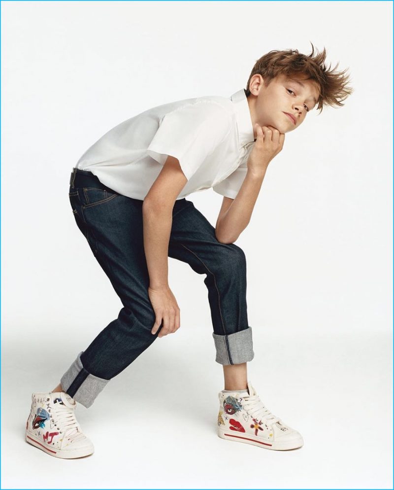 Brooklyn is continuing his dream of being a model having graced the pages of magazines like Miss Vogue, T Magazine and playing photographer for Burberry Brit’s ads.