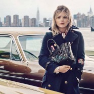 The 19-year-old actress and girlfriend of Brookyln Beckham was photographed by Steven Meisel. Standing between parked cars in front of Manhattan’s skyline, Moretz sports a navy blue jacket and holds a black Coach handbag adorned with leather butterfly embellishments. In another image she is seen casually leaning out the window of an old beige car.