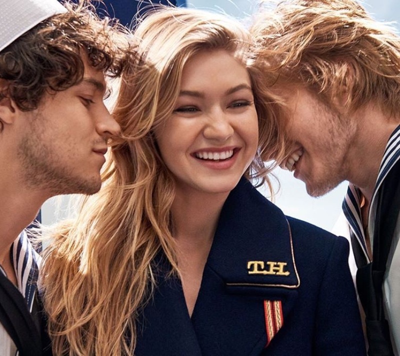The campaign was shot by legendary photographer Mikael Jansson and features the social superstar dressed in nautical all-American gear and a navy blue captain’s jacket. In the accompanying video for the campaign Gigi is seen bossing around a crew of hunky male models in sailor outfits.