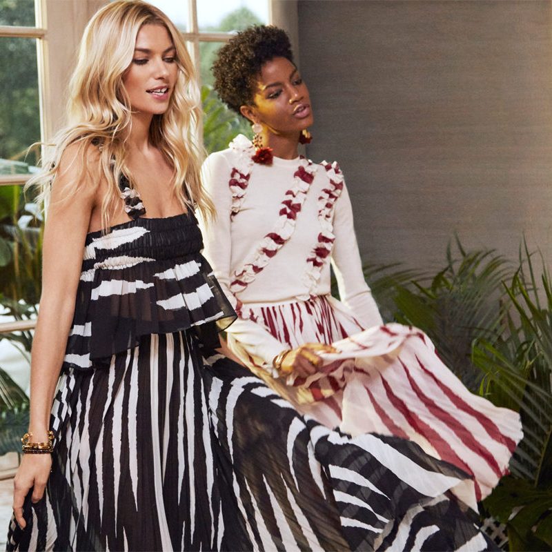The new Tory Burch Holiday 2016 collection features matching floor-length skirts covered in shimmering paillettes with retro-inspired bikini tops, scarves, head wraps, New Year’s Eve-ready skirts and vacation ready swimwear.