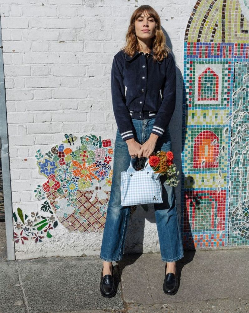 The affordable gingham tote is light blue and white, 100% cotton with the letter A on the front. Chung also starred in the campaign for the bag which was shot on London’s Columbia Road.