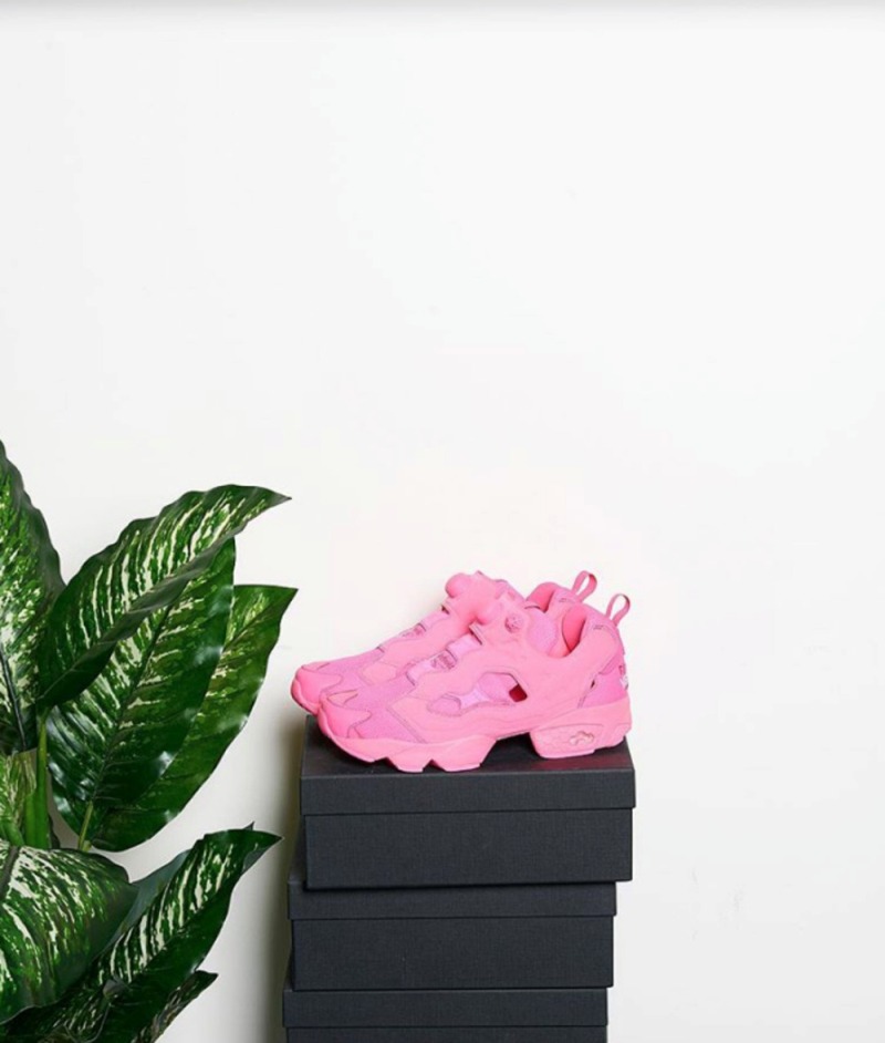 The sneaker, called ‘Fluro Instapump Fury’, is part of the new Autumn / Winter 2018 collection from Vetements. It has a futuristic design with a small opening on the side and the Vetements logo on the back. The shoe is available in two colorways of fluorescent pink and neon green.