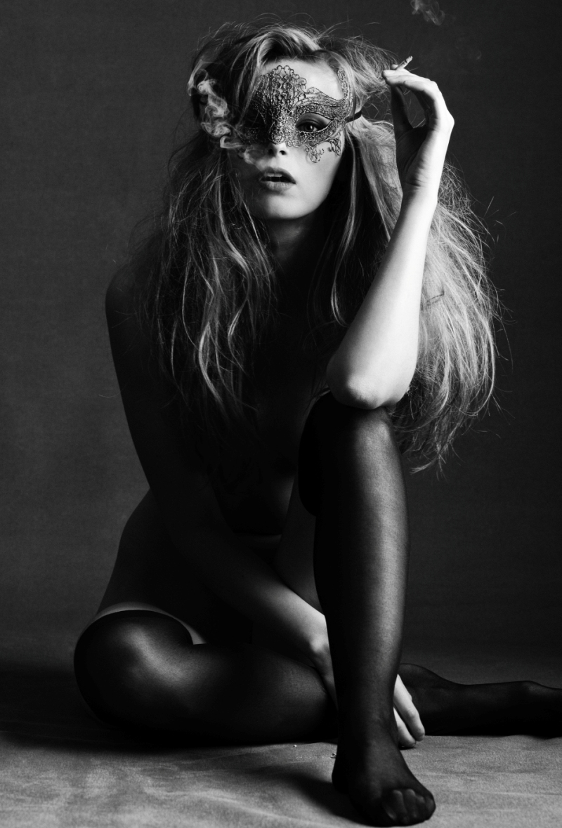 According to photographers Woszczyna & Wiesnowski, the shoot is not just an editorial, but rather a narrative featuring left-over body-paint and a mask. There is no mood board and the model fills in the gaps. In contrast to posing to the whims of others, the model poses for herself. ‘Take a day off from being your everyday self is what we tell our models on every editorial shoot. We let the model tell her version of the story, play her part as she pleases,’ explains Margaret and Jack.