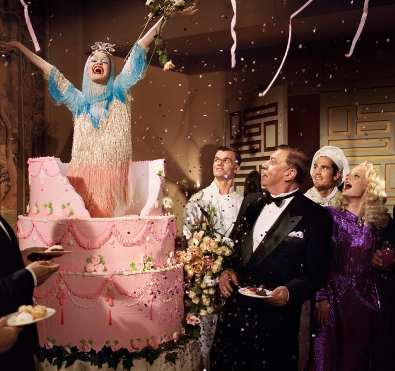With glitz and glamor in abundance, bright colors in clothing and decor, and a distinctive retro style, Michele uses his romantic view of old Hollywood showbiz and creates a dazzling ode to the celebrity culture and the golden age of Hollywood musicals. The characters appear as the stars of a Technicolor musical sporting looks from the new collection such as sparkling dresses, items adorned with feathers, glitter edges and bright colors.