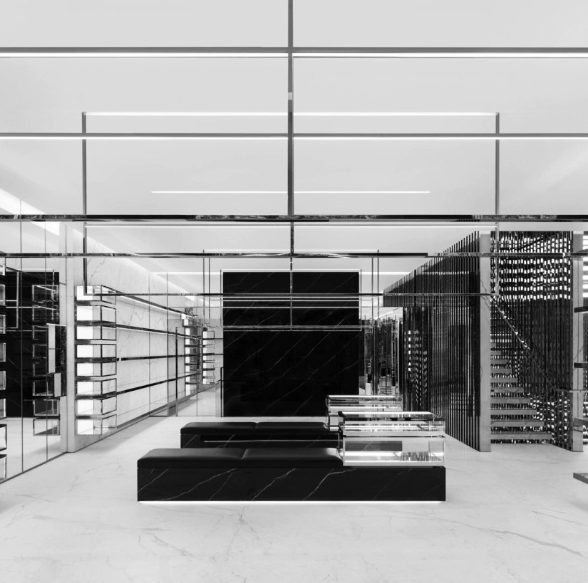 From white statuario marble walls and floors, and nickel-plated brass detailing, to sleek black marble benches fitted with buttery soft black leather seating, and crystal clear glass, altogether, the new store offers a original shopping experience that is reflective of the luxury Maison’s identity.