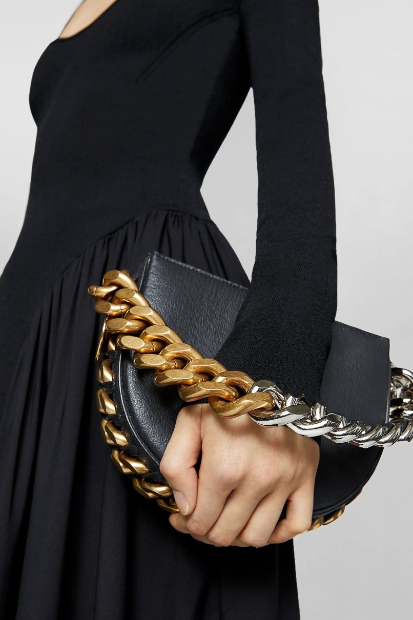 Made in association with California-based material solutions company Bolt Threads, the bag was first introduced during Stella McCartney’s Spring/Summer 2022 fashion show in Paris, in October 2021. Aptly called ‘Frayme Mylo’ it was inspired by McCartney’s iconic Falabella bag and took over 5,000 iterations of the material. Hand-crafted by Italian artisans, it features an oversized recyclable aluminium chain strap that runs around the bag, as well as a zamac statement medallion.