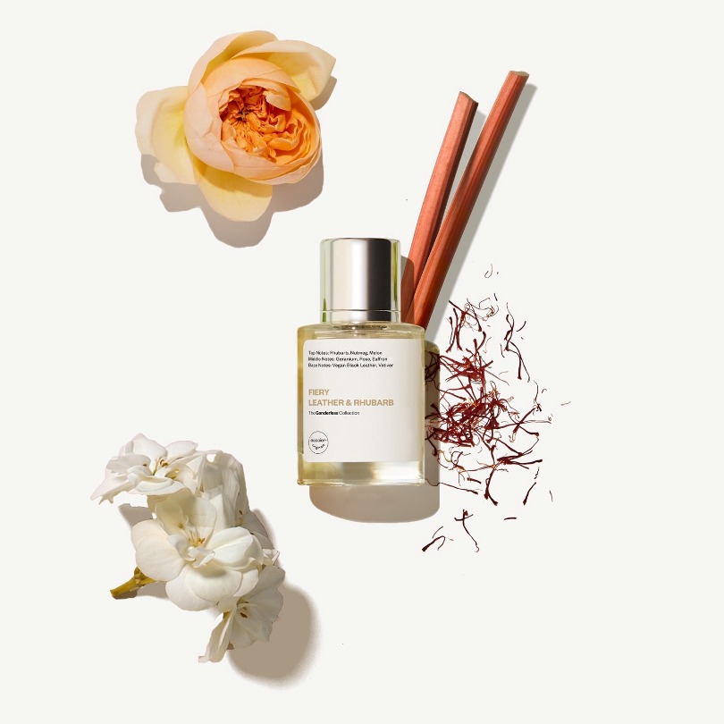 Vegan black leather, florals, and rhubarb blend together for a refreshing fragrance, making Fiery Leather & Rhubarb easy to wear everyday. It also instantly evokes memories of summer nights.