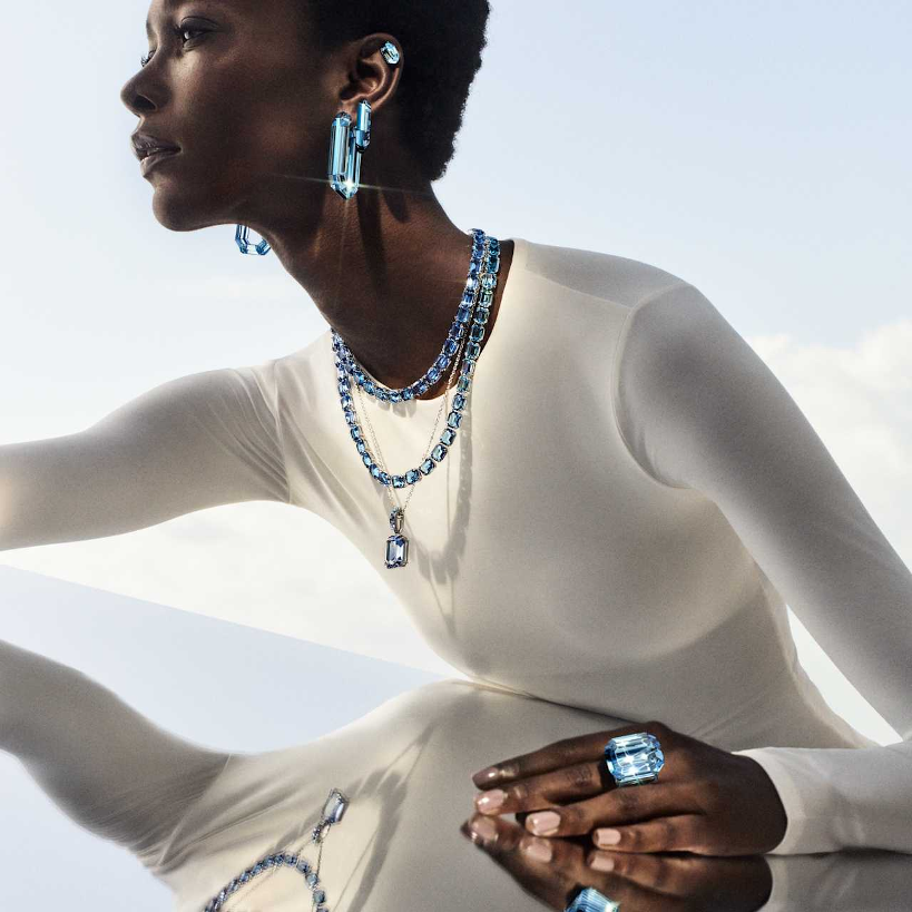At present ‘Swarovski ReCreated Crystals’ have been put to use in three of its collections: Millenia, Sublima and Black Swan. Millenia bracelets, necklaces, and earrings have been crafted with both ReCreated and classic Swarovski crystals. Ocean-inspired Sublima Wave Chokers are made from ReCreated Crystals in Ice Blue illuminate. A selection of Swan motif jewelry is adorned with a luminous pave of Jet Black Swarovski ReCreated crystals.