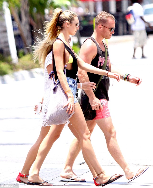 Candice Swanepoel traded in her barely there string bikini which she wore to have fun poolside at a Miami pool with beau, Hermann Nicoli on Saturday and opted for a pair of tiny denim cutoffs and a skimpy top and set hearts-a-thumping as she went for a stroll with some friends around Miami on...