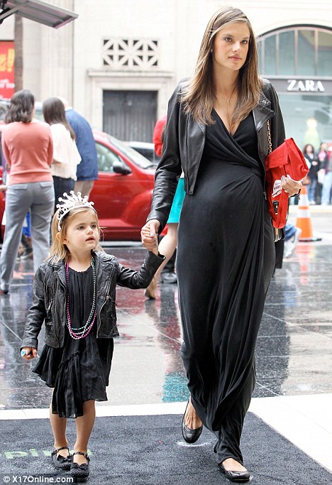 Taking her daughter Anja to the LA premiere of Mirror Mirror last weekend, Alessandra Ambrosio made another beautiful appearence. Seve months pregnant and glowing, the model kept her usual effortless elegance. Mother and daughter looke adorable in matching total black outfits: dress, leather...